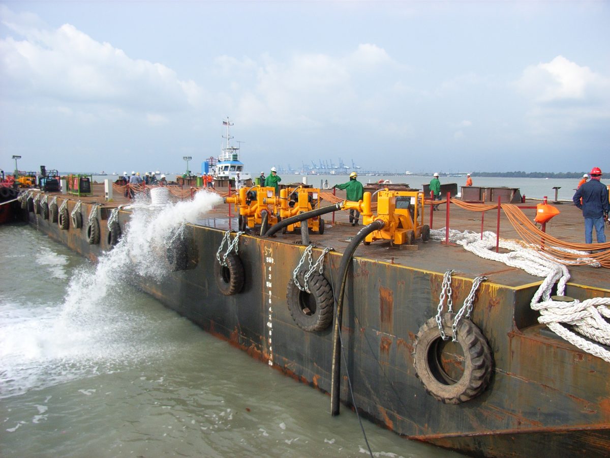 Gencyom’s fleet of pumps includes skid and trolley mounted pumps driven by a small diesel engine. Capacities of these pumps go upto 400m3/hr and are ideal for use in harsh conditions like pumping seawater on barges. The pumps are the largest size that can easily be moved around without the use of cranes or forklifts.