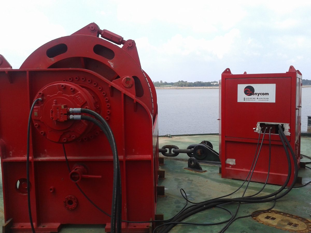 WInches from 15t to 80t line pull, 15t to 120t brake holding are available. Any of the units can be mobilised by standard 20′ container and will come with diesel engine or electric driven hydraulic powerpack